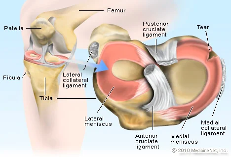 There are two rings of cartilage inside the knee joint medial and lateral called menisci. These rings provide cushioning and support to knee. Tears of meniscus can occurs during sports activities or trauma to the knee or these can be degenerative. Medial ring is commonly injuries than lateral. These cause pain, locking of knee which doesn’t allow the person to full straighten his knee. Meniscal tears with chronic pain and locking episode requires repair or removal of such tears.